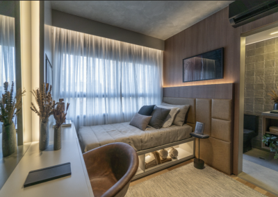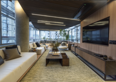 São 19 unidades-tipo de 185 m², mais uma unidade “Garden” de 412 m². E todas elas com 3 suítes e varanda. Afora a completa área de lazer dividida entre o andar térreo e o rooftop, ressalta-se o paisagismo que se estende nos ambientes das áreas comuns.