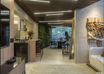Sistemas e materiais sustentáveis, como madeira plástica ecológica, infraestrutura para aquecimento solar e acabamentos de alta durabilidade que exigem pouca manutenção, como concreto aparente e ladrilhos hidráulicos, são alguns destaques do edifício, que também traz vidros de alta eficiência energética, promovendo controle solar e isolamento térmico.