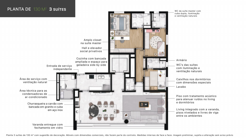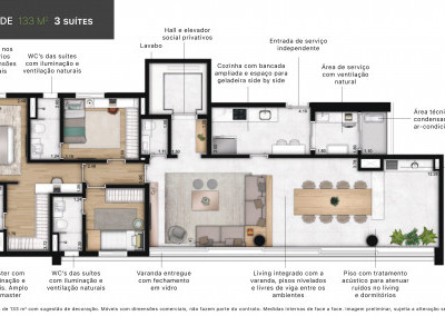 As unidades do Lux House foram projetadas para oferecer o máximo de espaço e funcionalidade, com metragens de 130m² e 133m². Cada apartamento dispõe de 3 suítes, garantindo privacidade e conforto para toda a família, além de 2 vagas de garagem para sua comodidade.