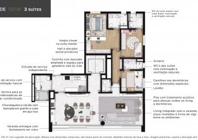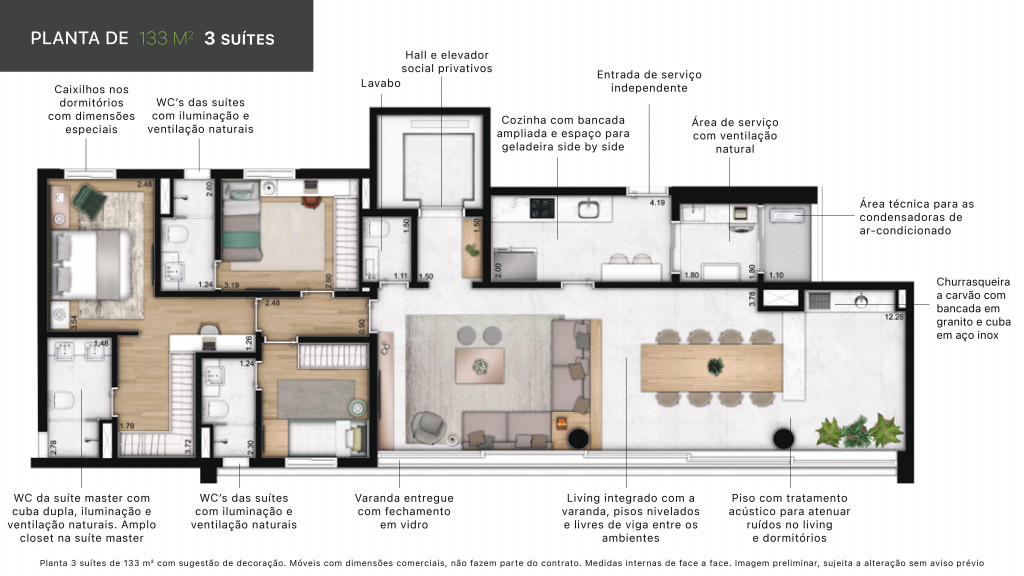 - Área útil: 133.42 m2